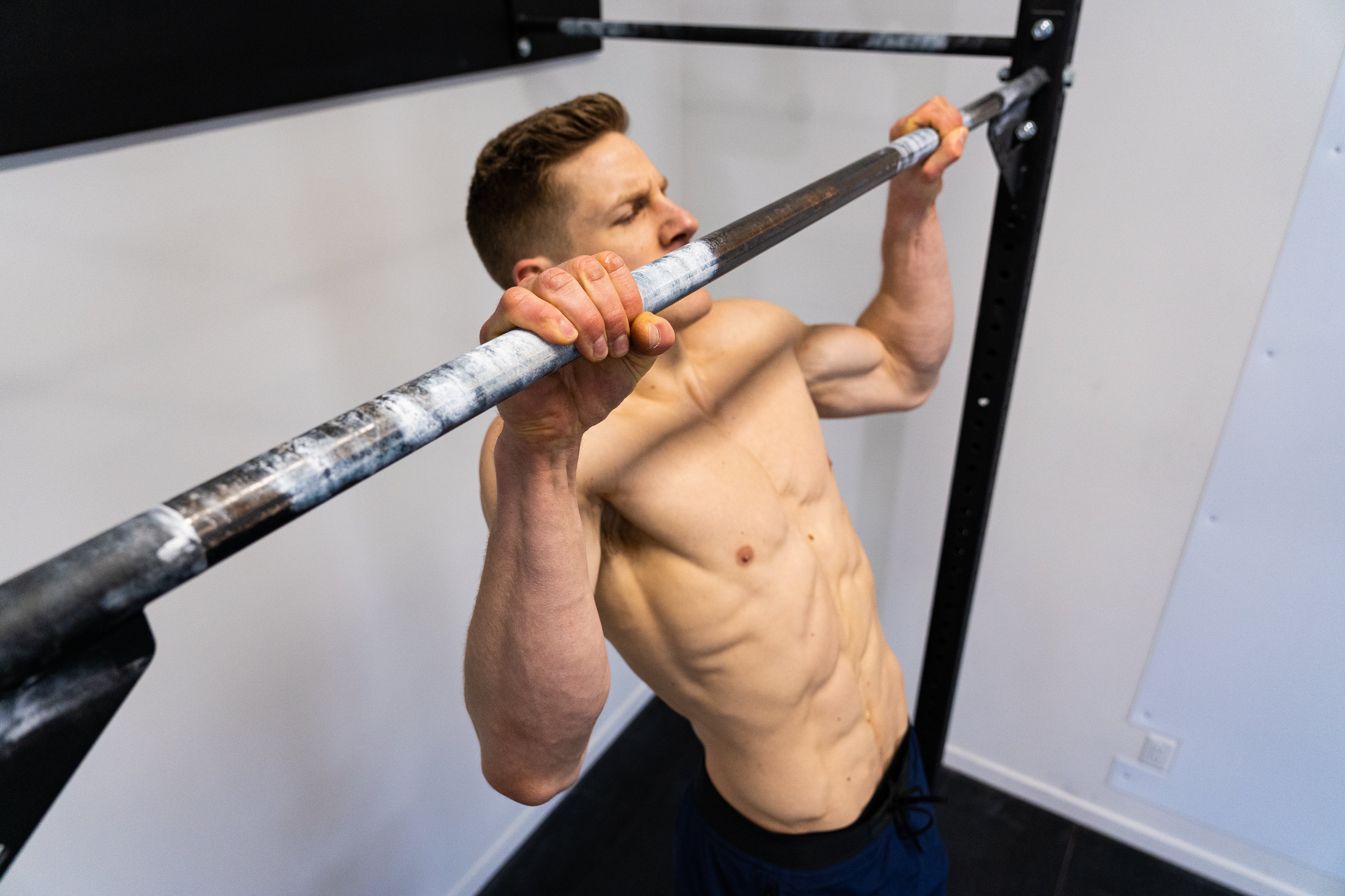 - 6 ‘Push-Away’ from Chin Over Bar (Hold 1 Second at Top Before Push Away)